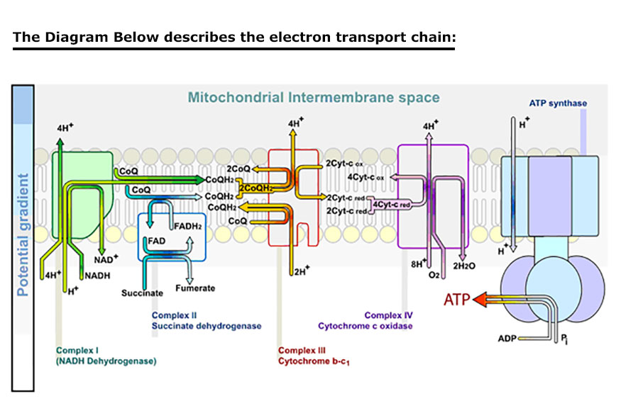 radical to the ADP. The ATP molecules store and transport the energy that is then used in the many chemical processes within the cell that participate in all the metabolic functions of living cells. This phenomenon is referred to as the electron transport chain and is described in the diagrams below.